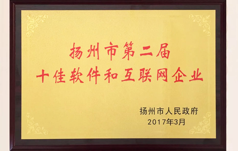 榮獲“揚州市軟件服務(wù)業(yè)雙十佳”稱號